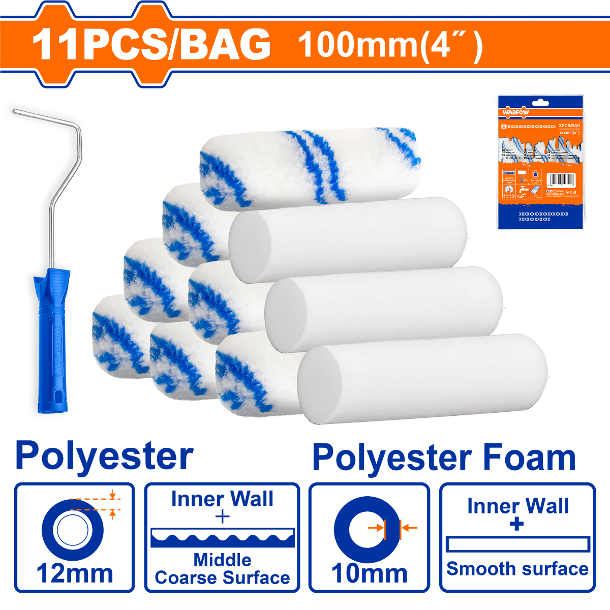 Bộ cọ lăn sơn 11pcs WADFOW WCB5411: là một trợ thủ đắc lực cho việc sơn tường trong nhà, giúp bạn thực hiện công việc sơn một cách nhanh chóng và hiệu quả hơn. Chất liệu xốp polyester giúp phân phối sơn đều, tạo lớp sơn mịn màng và đẹp mắt trên bề mặt tường và trần nhà