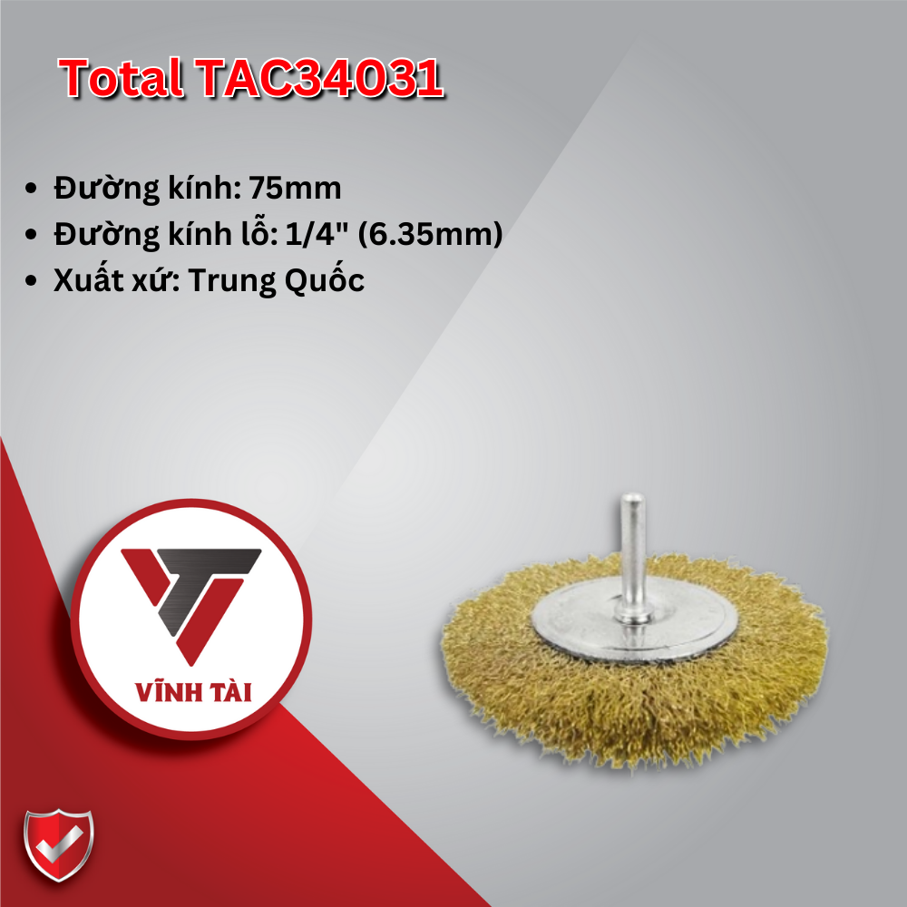 Bánh cước thau 75mm Total TAC34031 kích thước phù hợp cho nhiều công việc mài và sửa chữa, được chế tạo với chất liệu chất lượng cao, đảm bảo độ bền và tuổi thọ lâu dài.