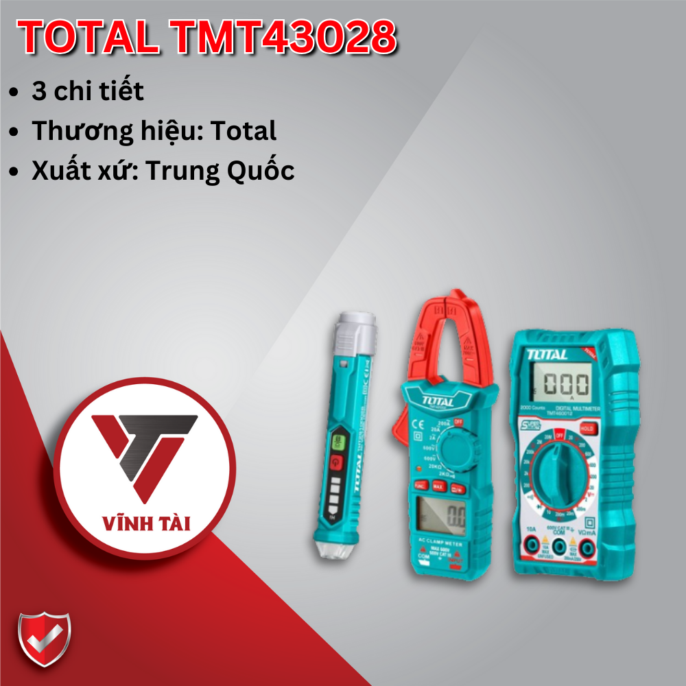 Bộ dụng cụ đo điện 3pcs Total TMT43028 : phù hợp với những người làm việc trong lĩnh vực kỹ thuật, những người sửa chữa và bảo trì thiết bị điện, như cả những người quan tâm đến an toàn khi sử dụng thiết bị điện trong cuộc sống hàng ngày.