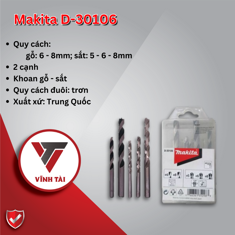 Bộ mũi khoan Sắt-Gỗ 5pcs Makita D-30106 được chế tác với chất liệu cao cấp nên sở hữu độ rắn chắc tuyệt đối, chịu nhiệt tối ưu, chịu lực tốt .