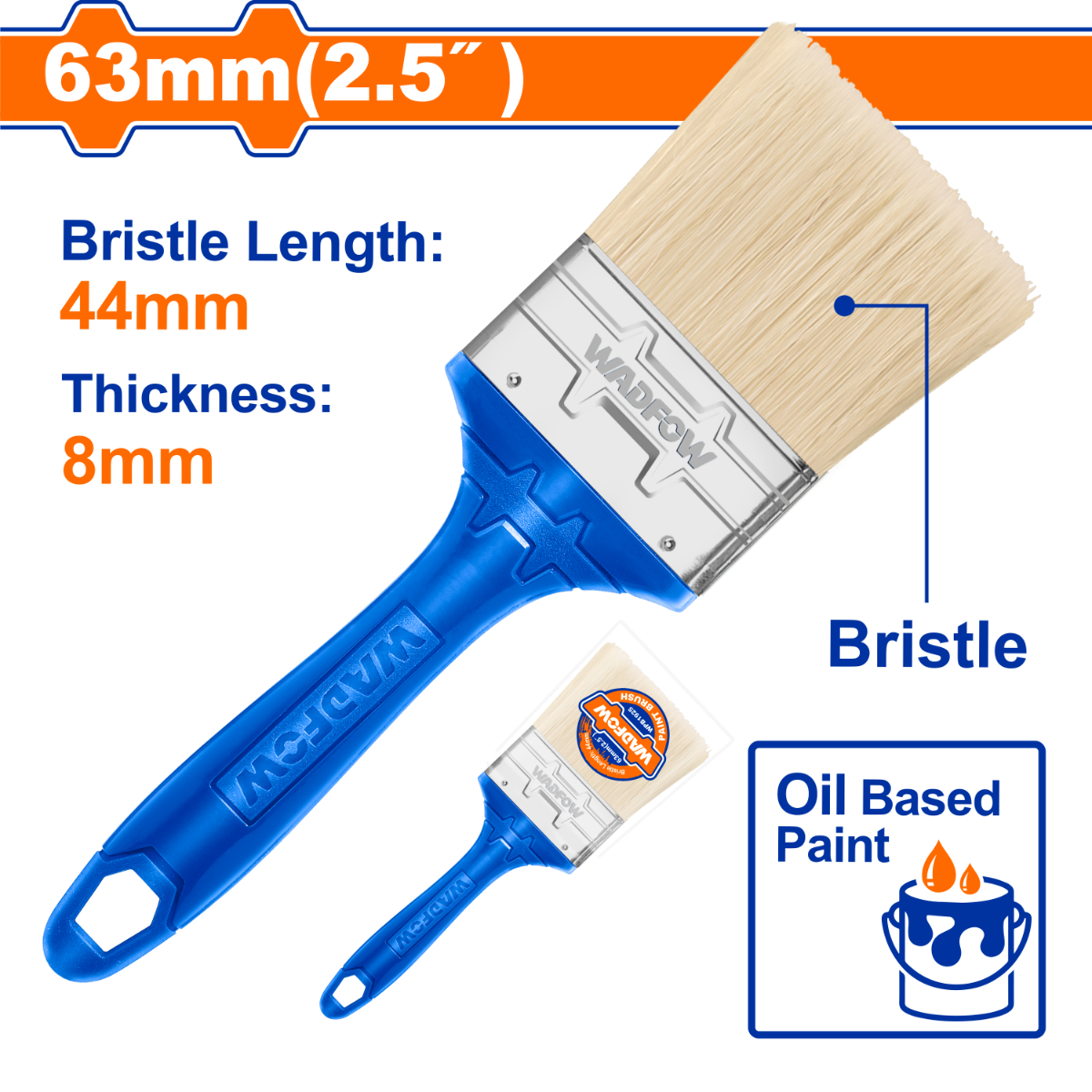 Cọ sơn 63mm cán nhựa WADFOW WPB1925: được chế tạo với chất liệu chất lượng cao, đảm bảo sự bền bỉ và độ bền trong suốt quá trình sử dụng. Tay cầm bằng nhựa thiết kế độc đáo mang lại sự thoải mái và ổn định trong quá trình sử dụng.