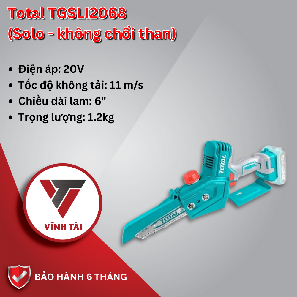 Máy cưa xích PIN 20V Total TGSLI2068 (Solo – không chổi than)