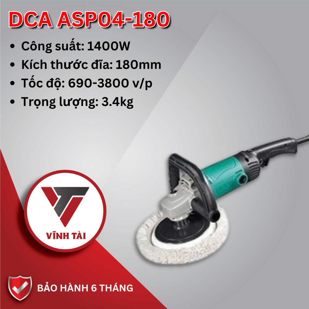 Máy đánh bóng 180mm DCA ASP04-180: được thiết kế để hoạt động với điện áp thông dụng là 220V và tần số 50Hz, phù hợp với nguồn điện chung ở nhiều quốc gia.