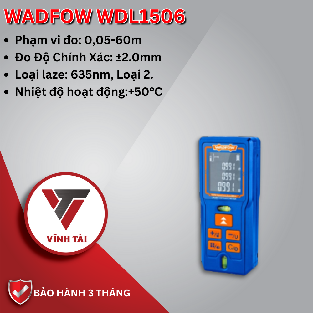 Máy đo khoảng cách 60m WADFOW WDL1506: là một công cụ đo lường tiên tiến ,đem lại sự chính xác, linh hoạt và tiện lợi trong việc đo khoảng cách, diện tích, thể tích và chiều cao trong nhiều tình huống khác nhau.