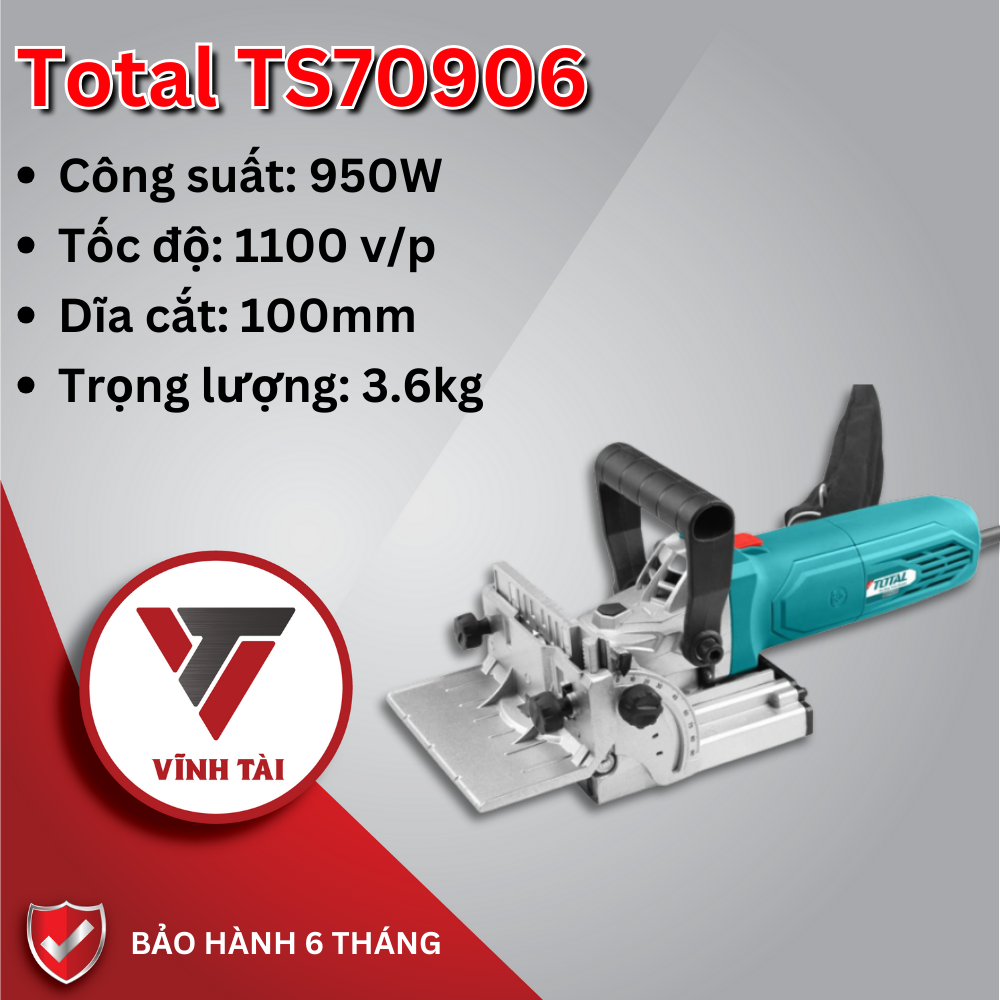 TS70906 là một sản phẩm chất lượng cao của thương hiệu Total với thiết kế chắc chắn, độ bền cao. Sản phẩm được trang bị động cơ mạnh mẽ lên đến 950W, giúp tạo ra lực cắt mạnh mẽ để đảm bảo hoàn thành tốt các công việc ghép mộng.