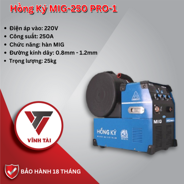 Máy hàn MIG Hồng Ký MIG-250 PRO-1: được sản xuất ứng dụng công nghệ Inverter tối ưu hóa tiết kiệm năng lượng từ 50% – 60%, hiệu suất hoạt động cao, phù hợp với các công trình nhà xưởng có quy mô từ nhỏ đến lớn.