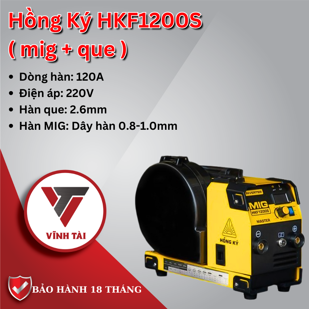 Máy hàn MIG không dùng khí Hồng Ký 120A 220V – HKF1200S là dòng máy đa chức năng, hỗ trợ hàn MIG không khí với dây lõi thuốc, hàn que 2.6mm, súng tháo rời 14AK tiện lợi, cho mối hàn đẹp vượt trội.
