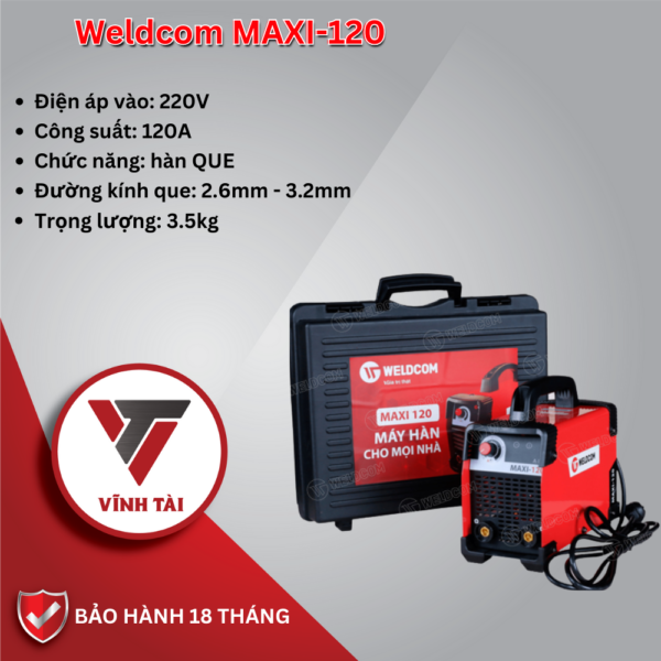Máy hàn QUE Weldcom MAXI-120 là một sản phẩm chất lượng cao được thiết kế để hàn các vật liệu kim loại như thép cacbon, thép không gỉ.
