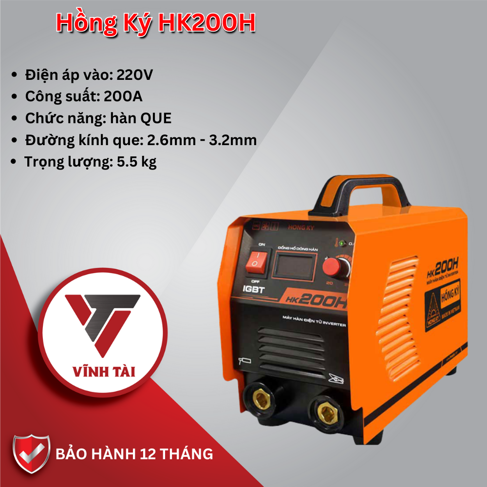 Máy hàn QUE Hồng Ký HK 200H là một sản phẩm máy hàn chất lượng cao được thiết kế để hỗ trợ cho các công việc hàn sửa chữa, sản xuất và xây dựng.