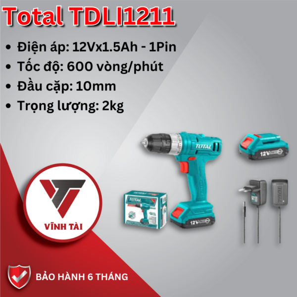 Máy khoan dùng pin 12V TOTAL TDLI1211 Tặng kèm 1 Pin 1.5Ah 1 Sạc và