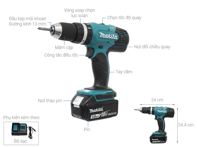 Máy khoan tường pin 18V Makita DHP453SFX8 là một sản phẩm chất lượng của thương hiệu Makita, được thiết kế để đáp ứng nhu cầu khoan và vặn vít trong các ứng dụng công nghiệp và gia đình. Với công nghệ pin Lithium-Ion, sản phẩm này mang lại hiệu suất và thời lượng pin đáng kể, giúp người dùng tiết kiệm thời gian và năng lượng trong quá trình làm việc.