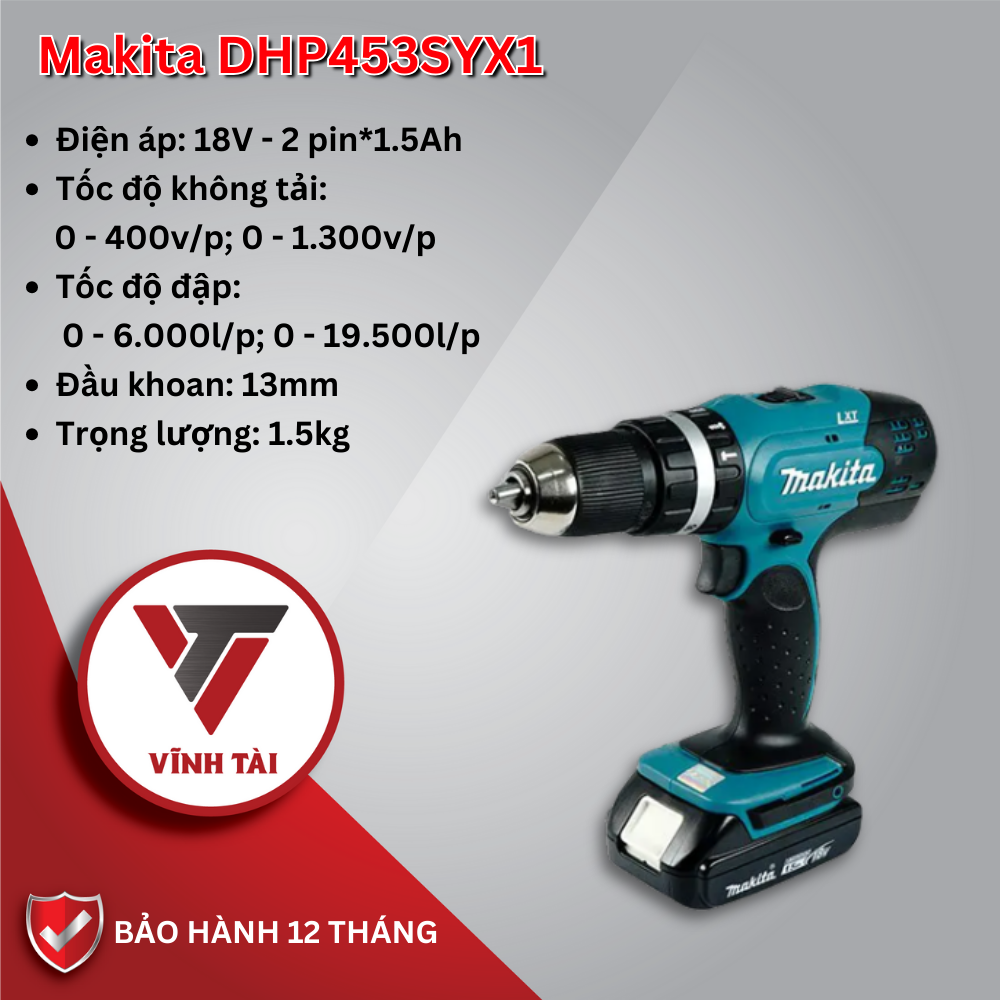 Máy khoan tường pin 18V Makita DHP453SYX1 là một sản phẩm chất lượng của thương hiệu Makita, được thiết kế để đáp ứng nhu cầu khoan và vặn vít trong các ứng dụng công nghiệp và gia đình. Với công nghệ pin Lithium-Ion, sản phẩm này mang lại hiệu suất và thời lượng pin đáng kể, giúp người dùng tiết kiệm thời gian và năng lượng trong quá trình làm việc.