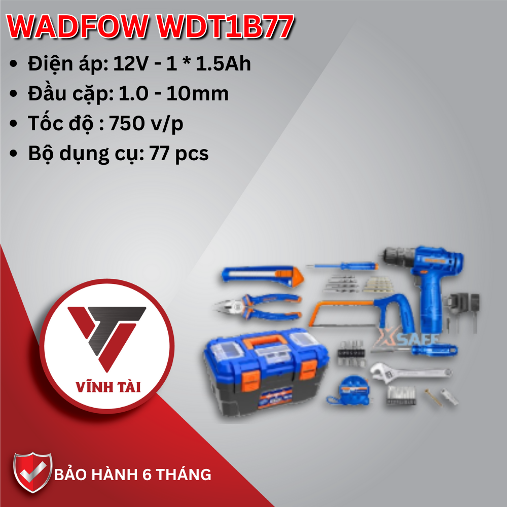 Máy khoan PIN 12V WADFOW WDT1B77 (77 pcs):  là một công cụ mạnh mẽ và đa chức năng, được thiết kế để đáp ứng nhu cầu khoan và đập trong các công việc xây dựng và sửa chữa.