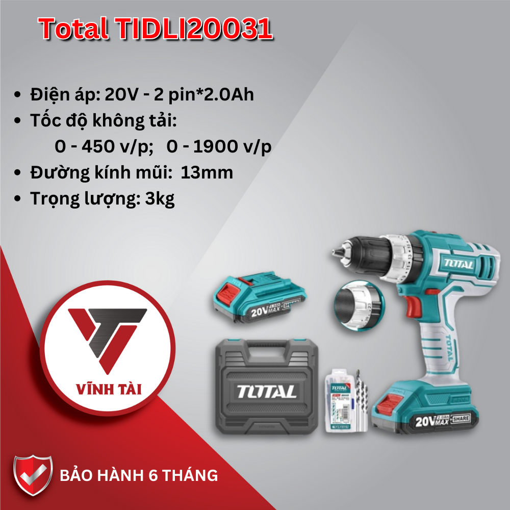 Máy khoan PIN 20V Total TIDLI20031 là một thiết bị độc đáo và hiệu quả trong việc khoan. Nó có thể hoạt động với tốc độ cao và cầm tay tiện dụng.