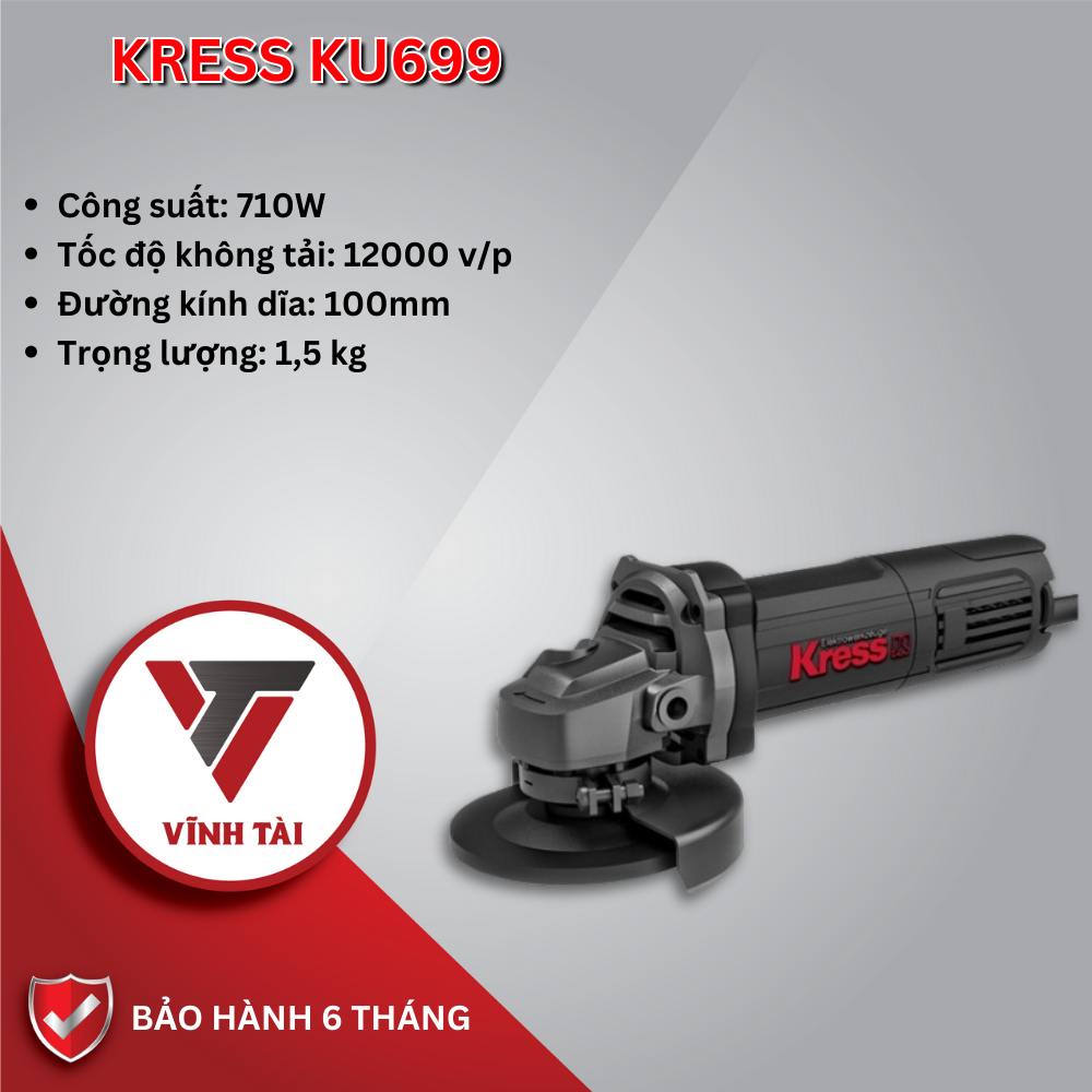 Máy mài KRESS KU699: có thiết kế nhỏ gọn được trang bị công suất cực lớn 710W, tốc độ không tải cao 12.000 vòng/phút giúp thao tác mài bề mặt kim loại cực nhanh, mang lại hiệu suất cao trong công việc.