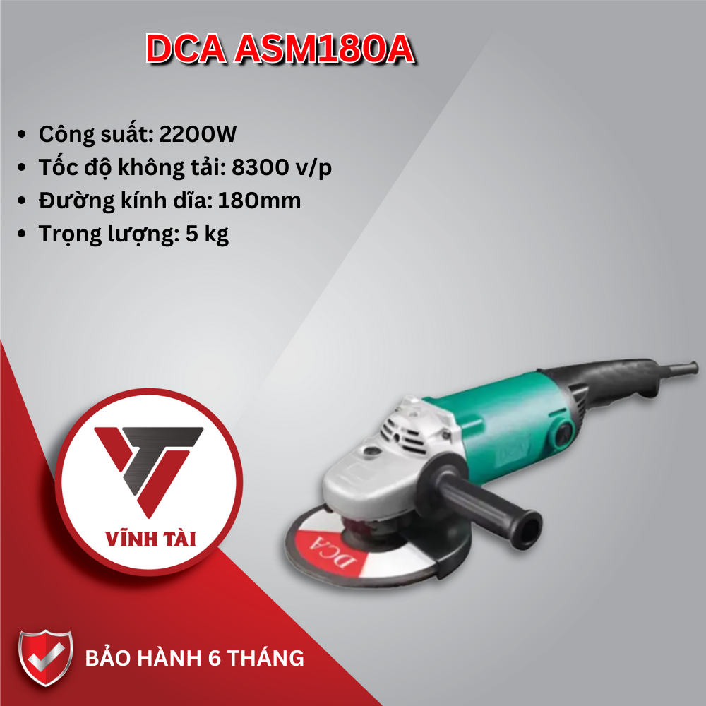 Máy mài góc 180mm DCA ASM180A được sản xuất trên dây chuyền và công nghệ hiện đại, tích hợp nhiều tính năng thông minh, thiết kế chuyên dụng dùng để mài các vật liệu cứng như kim loại giúp tiết kiệm thời gian và sức lao động.