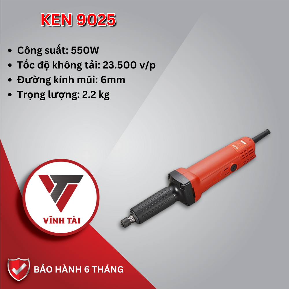Máy mài khuôn KEN 9025: Thích hợp sử dụng cho những công việc mài khó ở góc, cạnh nhỏ, những nơi chật hẹp, có diện tích bề mặt tiếp xúc nhỏ đòi hỏi sự cần thiết và tỉ mỉ, đặc biệt là những nơi không có điểm tựa để sử dụng máy mài góc.