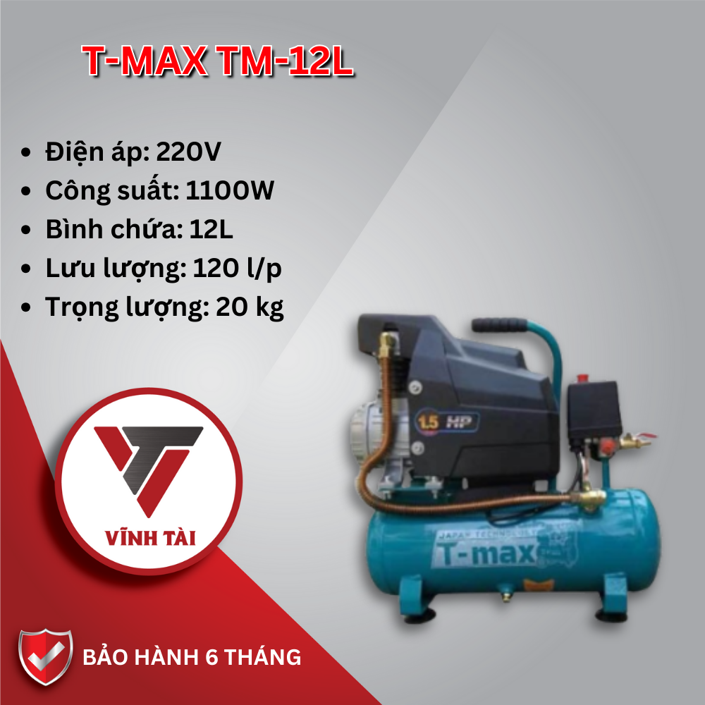 Tổng quan, Máy nén khí T-MAX TM-12L là một sản phẩm đáng tin cậy, chắc chắn sẽ đem đến cho người sử dụng những hiệu quả cao nhất trong nhu cầu công việc của mình