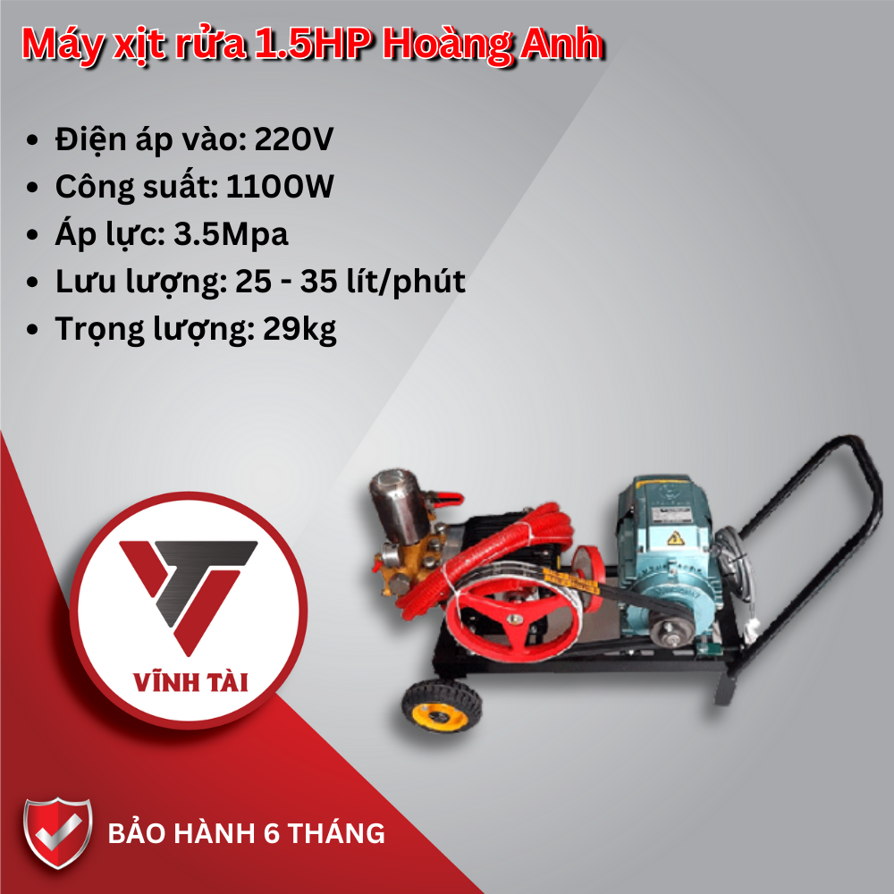 Với moteur công suất 1.5HP thương hiệu Hoàng Anh, lưu lượng nước sẽ mạnh , phù hợp với những trạm rửa xe với công suất cao thích hợp để cố định, trang bị cho các trung tâm chăm sóc xe để rửa xe ô tô – xe máy cùng các hoạt động công nghiệp khác.