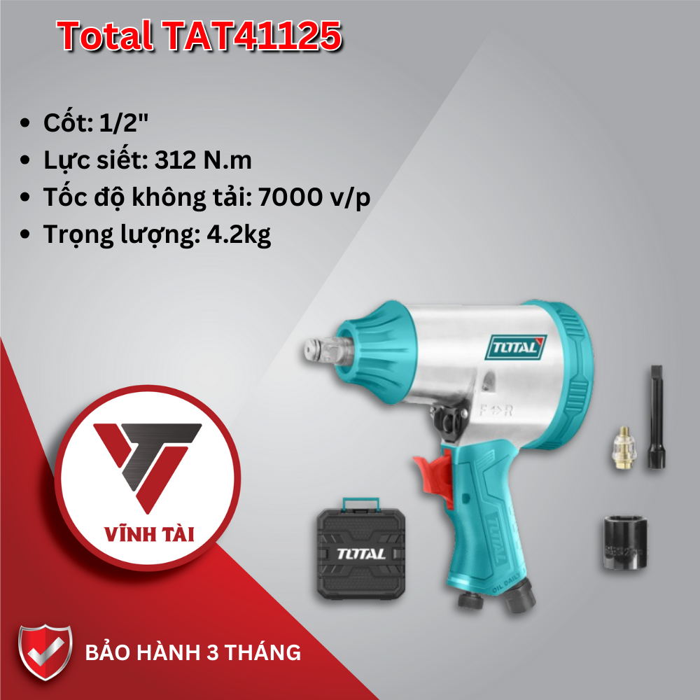 Máy siết bulong Hơi Total TAT41125 được chế tạo bằng chất liệu cao cấp, đảm bảo độ bền lâu dài cho sản phẩm.