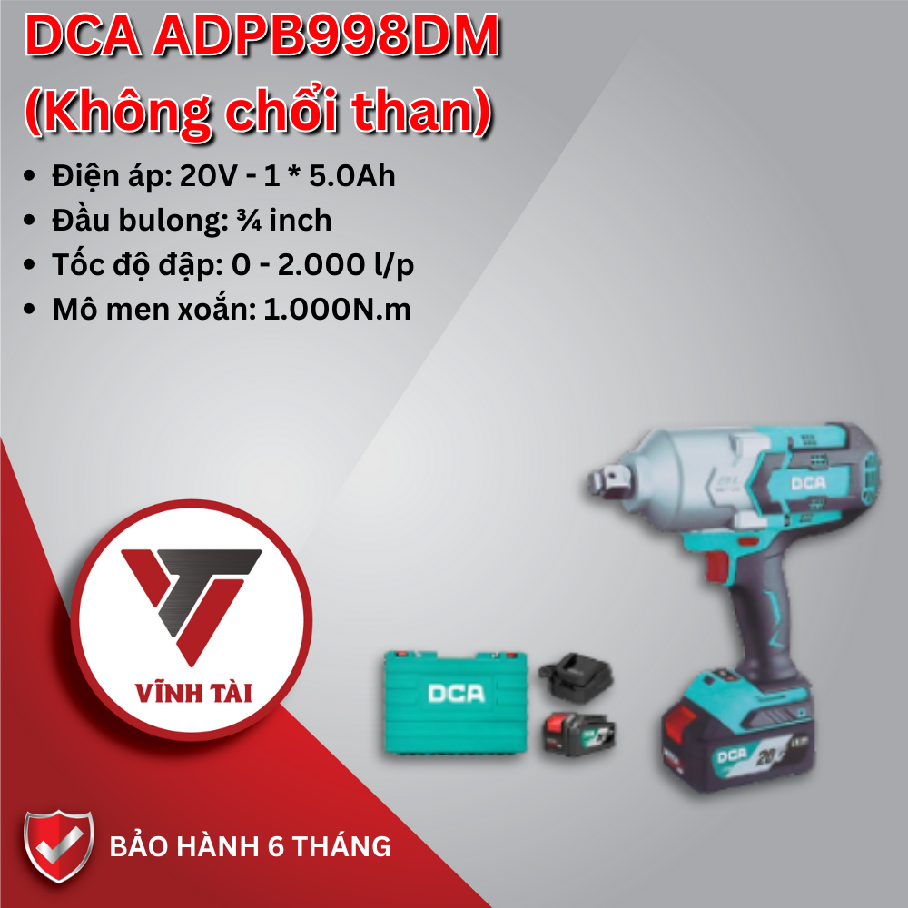 Máy siết bulong PIN 20V DCA ADPB998DM ( Không chổi than): là sự lựa chọn hoàn hảo cho công việc cần sức mạnh và độ bền.