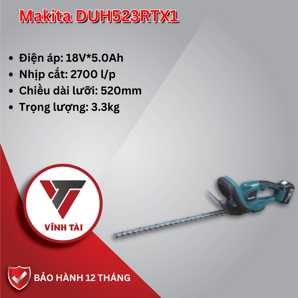 Máy cắt tỉa hàng rào Makita DUH523RTX1 dành cho thợ cắt tỉa cây cảnh, hàng rào chuyên nghiệp. Với phần lưỡi hợp kim chắc chắn giúp cho quá trình cắt nhanh và mượt hơn.