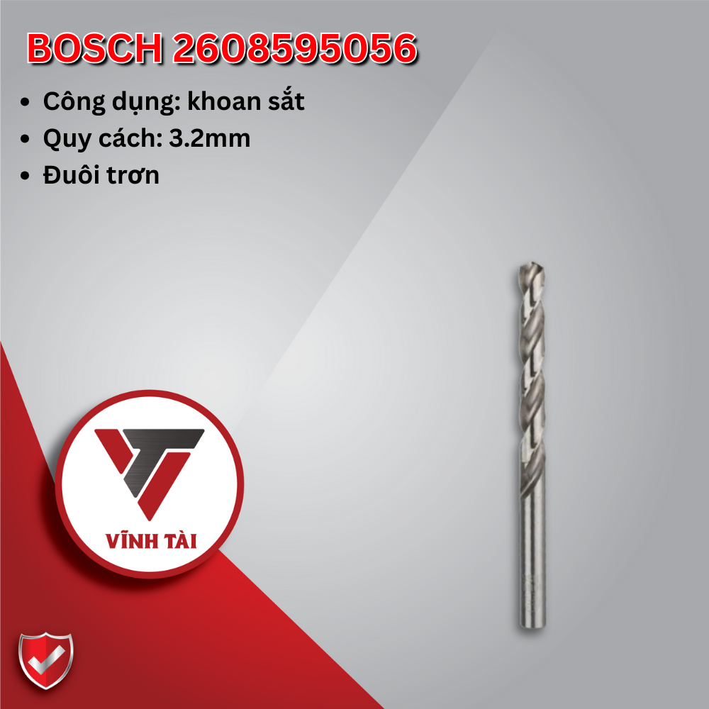Mũi khoan sắt 3.2mm BOSCH 2608595056 được làm từ vật liệu hợp kim cao cấp, rất cứng, có khả năng chịu nhiệt, chịu lực tốt, chống gỉ sét và chống mài mòn cao