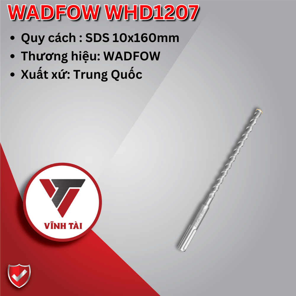 Mũi khoan SDS 10x160mm WADFOW WHD1207 : là lựa chọn tuyệt vời cho các công việc khoan bê tông chuyên nghiệp, từ xây dựng đến sửa chữa.