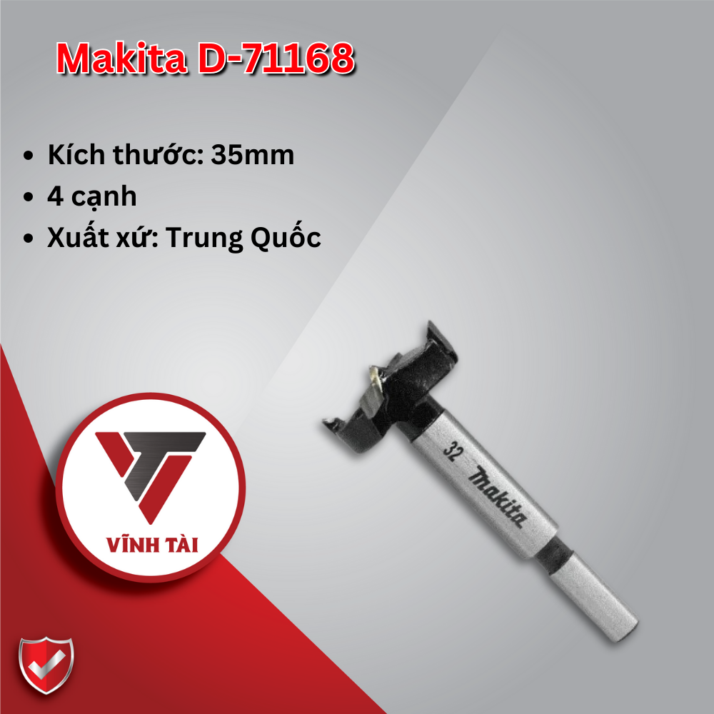 Mũi khoét gỗ 4 cạnh 35mm Makita D-71168 thường được sử dụng nhiều trong lĩnh vực xây dựng, lắp ráp…với chức năng khoét các bề mặt một cách dễ dàng.