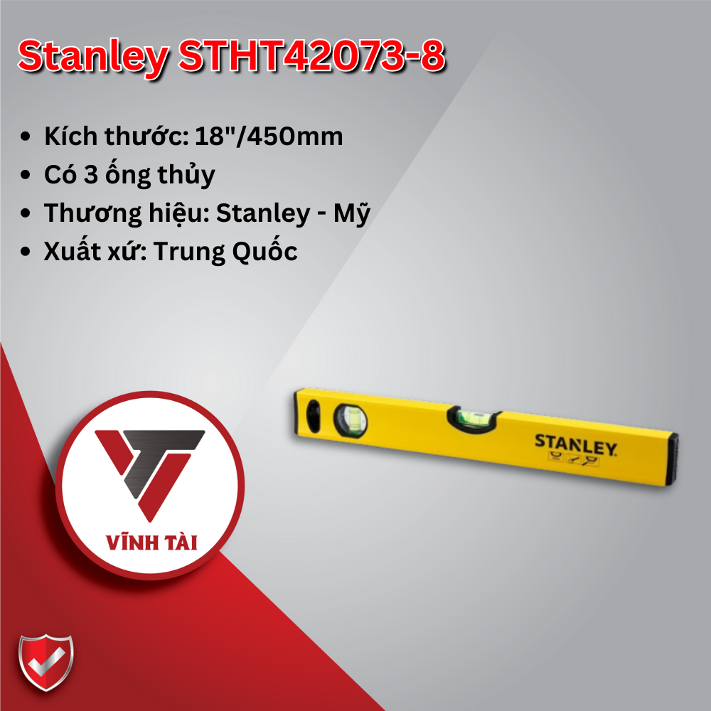Thước thủy 450mm Stanley STHT42073-8: Stanley được thiết kế với độ thẳng tuyệt đối, chống cong vênh cho khả năng đo đạc thuận lợi và chính xác.